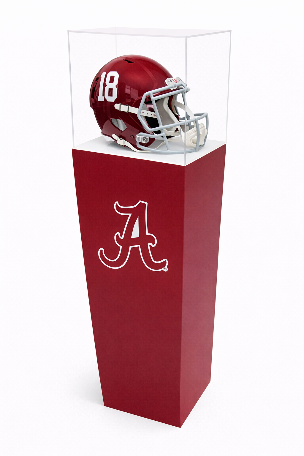 Showcase your school pride with a high-quality display pedestal from Collegiate Pedestals. The ‘Bama Memorabilia Display Pedestal is engineered to present your most valuable memorabilia with a professional, gallery-quality presence. It’s a perfect helmet stand or display for any other college sports memorabilia.